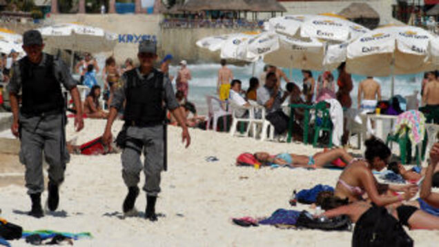 The death toll includes "two decapitated and scalped bodies" that were cut up into pieces and left outside a Sam's Club, and three other headless bodies left in a car parked by the main tourist drag. Nobody knows where the heads have gone, but the faces and scalps of the "two decapitated and scalped bodies" were stuffed into a purse and left at the scene. Not really the kind of thing that a typical Sam's Club shopper's looking for (i.e. gigantic jars of mayonnaise and pickles).