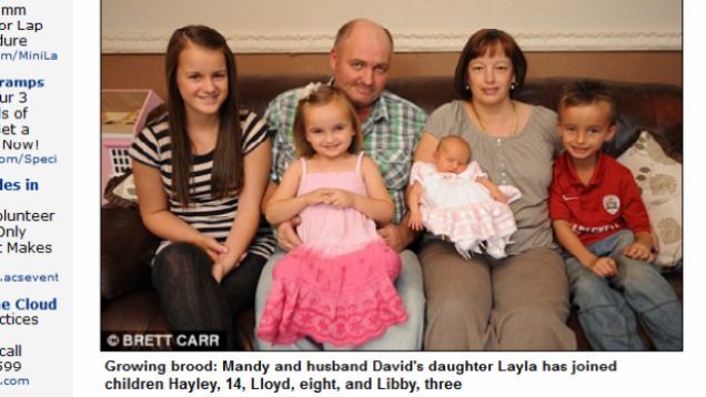 The Daily Mail reports that "All the heartache has now passed and Mandy is thrilled to be a mum again." And surely she is. But the picture of the Davies family doesn't really say "thrilled," does it? Consider the facial expression being worn by Papa Davies, who surely loves his new child yet seems to be expressing the sentiment, "aw heck." This poor guy.