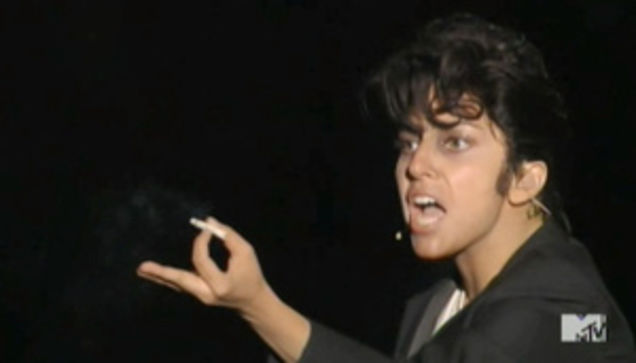 But as you'll see in the above video, Calderone then stuck around for the incredibly awkward Britney Spears tribute that followed, and it was he who later accepted Gaga's award for Best Female Video in the most annoying, affected way possible.