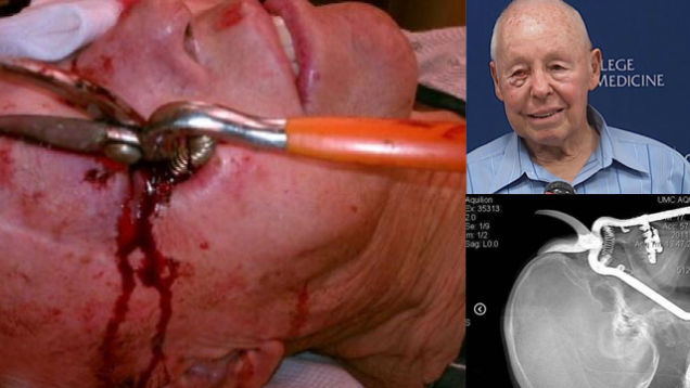 Yes, we can imagine, Leroy — what with these color photos of a rusty gardening implement lodged deep inside your head to back up your claims. In this press conference video, the doctors tasked with removing the shears explain how they saw their handle "resting on his carotid artery," after which they "carefully removed the instrument from his face." Amazingly, Leroy's eye was unharmed, and surgeons reconstructed his crushed eye socket with titanium implants. Hooray for miracles! (P.S. What's with all the freak, but ultimately harmless, impalements this summer?) [KVOA.com, screengrabs via KVOA]