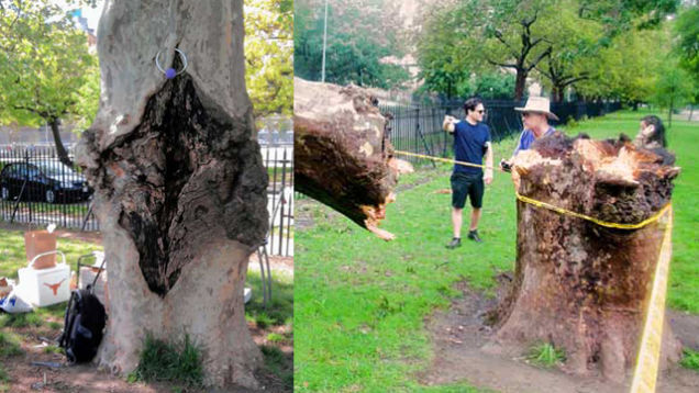 A Sycamore that stood for decades in Greenpoint's McCarren Park and dubbed the "Vagina Tree" for the way that its trunk — and there's really no delicate way to put this — resembled a Tyrannosaurus rex's ladyparts has been felled by Irene, The Brooklyn Paper reports.