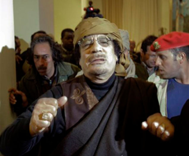 Fugitive ex-dictator Muammar Qaddafi is most definitely probably surrounded in a 40-mile-radius spot somewhere in the Sahara, Libya's new military council told the AP today. "He can't get out," a spokesman said.