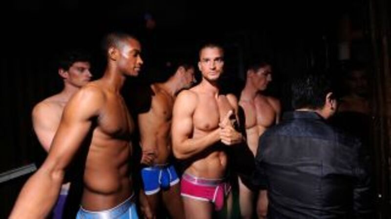 Last night underwear brand 2(x)ist had a runway show all their own. Maybe it was to show off their new line or maybe it was just to give the women and gays in town for the couture extravaganza something to get worked up about. Usually fashion shows are boring, but here's one we really wish we were invited to. Since we missed it, let's all take a look at what went on in this wonderful world where the only thing keeping manhood in check is a thin veil of cotton.