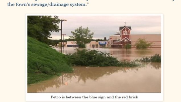 But this argument, unlike Petco's parking lot, doesn't hold water. As one news report points out, people who lived very close to the store were evacuated. On September 7 at 5:35 PM, Broome County Emergency Management issued a NY-Alert message titled, "Flood in Johnson City at or above levels of 2006 record flood/If you evacuated in 2006 then you need to evacuate now." That message called for everyone on Petco's street to evacuate, and predicted that the Susquehanna River would flood "to the same level or above the levels" as it had during a 2006 flood. The National Weather Service also issued warnings. Did Petco not receive them?