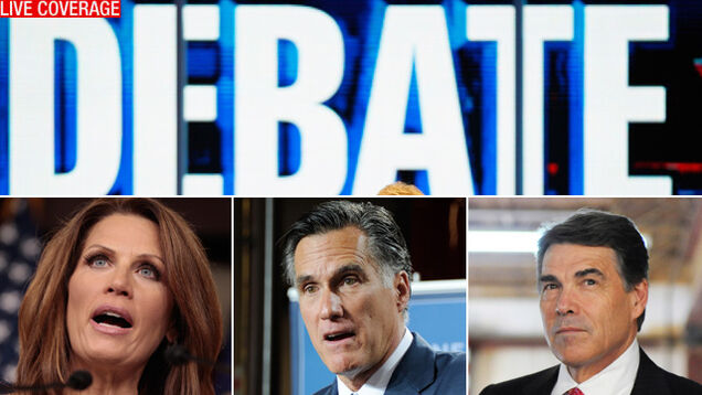 8:15 — Michele Bachmann: I will repeal everything, because I'm the great repealer! Wolf moves on to the real candidates. Rick Perry: Those programs, namely Social Security, will be there for everyone who's nearing retirement age. Meaning we'll keep paying into the "Ponzi scheme" for a few semi-old people's sake, hooray!