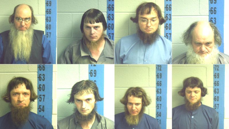 Here we have the booking photos (click to enlarge) of eight men from the Swartzentruber Amish sect, all of whom were ordered arrested and jailed on Monday by a Kentucky judge. Their crimes?