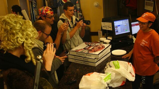 The pizza flood is a hallmark of the hacktivist collective Anonymous, which has become deeply involved in the Occupy Wall Street protest. But usually it's done to punish Anonymous' enemies, not aid their friends: They flood victims' houses with hundreds of dollars of Dominos or Papa John's (unpaid for, of course) as a creepy "we're watching you" calling card.