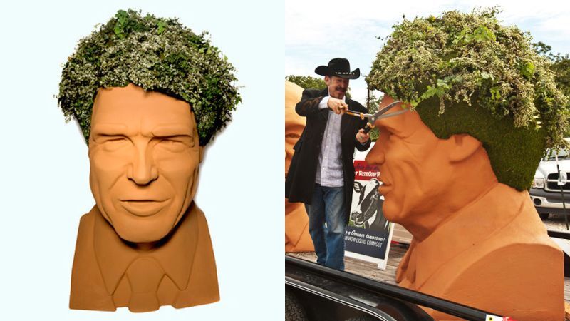 For sale for $4500 on eBay: A six-foot terra cotta flower planter shaped like Rick Perry's head. A Texas fertilizer company created Governor Goodhair's chia pet alter-ego during the 2010 gubernatorial election. Cow Wow Liquid Compost also created a chia bust of Perry's opponent Bill White. They then held an "election" to see which "head of state" had better "hair."