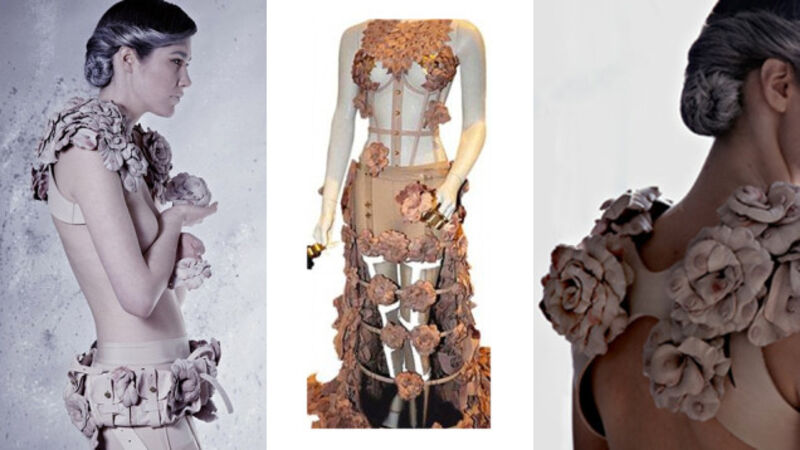 Freires explains that she got the nipples from tanneries, that would normal throw them away, so she sees turning the teets in a skanky halter as a form of recycling. Yes, she's being green! Some critics just find it inappropriate and animal rights ativists think it's cruel and humiliating for the animal. I don't think the worst part of this is the materials she used. No, I think the worst part is that it's ugly. It's like a see-through crazy bolero and a half-skirt that looks more like an undergarment—almost a nip slip, if you will. Well, you can't make a silk purse out of a sow's ear, but it appears that you can make a Victorian hooker costume from a bunch of cow boobs. Thanks for proving that, Rachel.