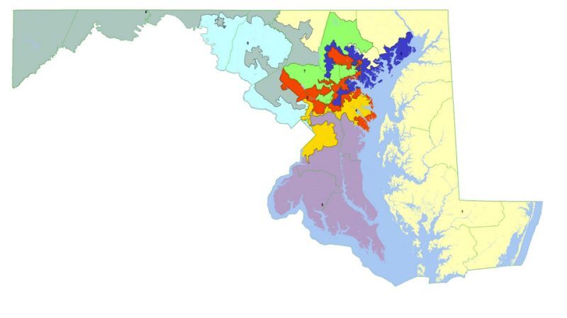 Maryland Democrats safely control both houses of the state legislature, along with the governorship. What a great opportunity to draw a bold Republican-screwing congressional map! See, they want to turn the state from a 6-2 Democrat advantage in the House of Representatives to a 7-1 advantage. How do you do that? Well, look at the funny squiggly picture up top, also known as a "Maryland redistricting draft map."