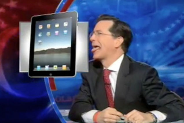 Stephen Colbert has long been an out-and-proud Apple fanboy: He showed off an iPad at the 2010 Grammys, a gift from Steve Jobs himself, months before it was released to the public. So it should come as no surprise that he took some time on tonight's Report to remember the company's late co-founder with a tribute that was both silly and sincere. "The thing I will miss," said Colbert, "is that no one else could make me beg quite like him."