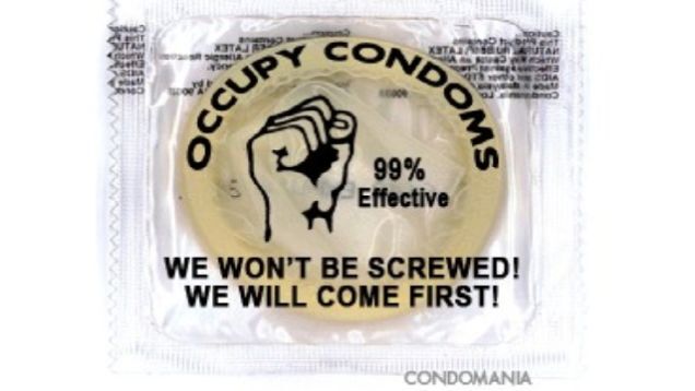 Given that Occupy Wall Street's HQ has turned into a revolutionary sex-fest that would make Caligula blush (h/t Smiths), you might be worried that protesters will reproduce awful things like sexually transmitted diseases and tiny socialist babies. To help you rest better—and to make a little money—the Condomania condom store has begun selling protest-themed protective devices.