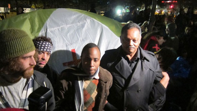 "Jesse Jackson at Zuccotti just before midnight. Police confrontation barely averted. Intense!"