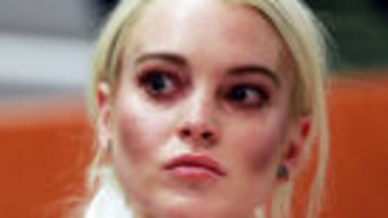 In case you've already forgotten, yesterday's bail revocation came after Lindsay flunked out of court-ordered community service with the L.A. Downtown Women's Center. [LAT, image from yesterday's court appearance via Getty]