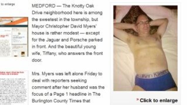 Another day, another weird sex-related news story starring a Republican politician from New Jersey. Today's installment stars Medford mayor and one-time Congressional candidate Chris Myers, who allegedly has a thing for blue Calvin Klein underpants and also rentboys—though maybe not, because have you heard about the nefarious things people do with this Photoshop computer-program stuff?