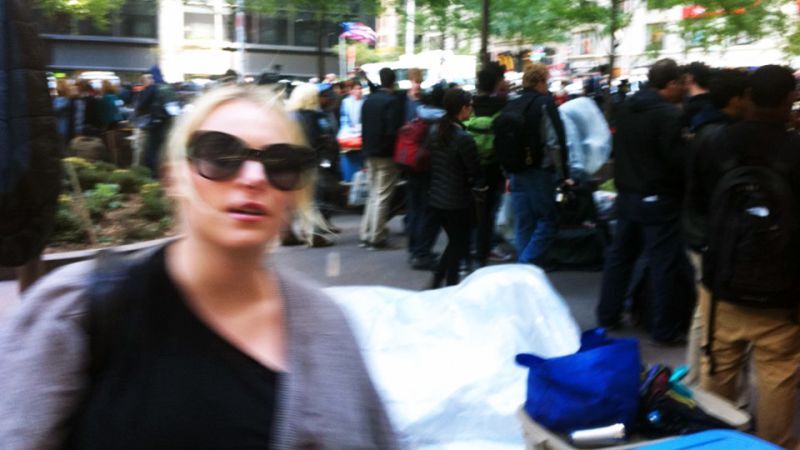 Meghan McCain, the witless daughter of a rage-addled ghoul and a dead-eyed multimillionaire, writes her thoughts down on her iPhone and sends them to Tina Brown, who puts them on her Daily Beast internet web site. Today's column recounts McCain's visit to Zuccotti Park, where we spotted her last week tirelessly and diligently conducting research.
