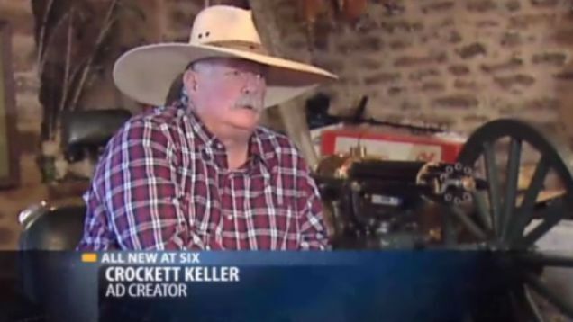 Texas-based country store owner and cardboard cutout Crockett Keller teaches concealed handgun safety classes to make a few extra bucks, which he spends on boots and hats and spurs and guns at his local CowboyMart. Like every discriminating businessman, he enforces some standards, which he thoughtfully informed the world about in a recent radio ad.