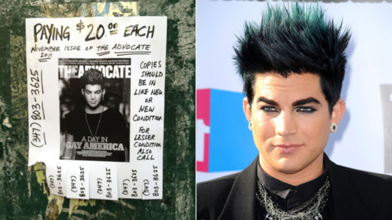 I decided to call the number and see what kind of insane person I'd find. On the other end was a guy named Rich, who told me that his cousin is in the Adam Lambert fan club and asked him to put up the signs so that they could buy up the issues and mail them out to "Glamberts." (That's what Adam's fans call themselves and also what Ernie's boyfriend calls himself when he wears a boa.) After a few questions, he hung up on me because he was going to meet someone about buying a stack of copies of the magazine.