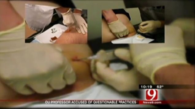 At Oklahoma University, several graduate students claim that health and exercise science professor Chad Kerksick used them as his personal research animals—performing various pokey, probe-y medical procedures on their bodies that ultimately caused pain and bruising. This was totally not what they signed up for when they paid tuition! One of the students told News 9 in Oklahoma City that Kerksick performed the experiments on behalf of companies who then paid him for his research. OU knew about the experiments, the student says, but Kerksick allegedly wanted to keep much of the research secret because it wasn't taking place under the most appropriate conditions. He's currently on a leave of absence without pay, and OU has ended his research. An investigation by the U.S. Food and Drug Administration is reportedly underway.