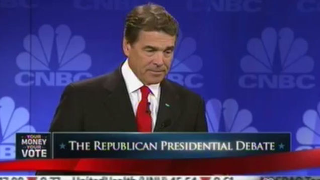 Whoever you are tonight, and whatever it is you're doing, just be glad you're not Rick Perry, whose 53-second fumble has become an instant master class in how not to intimidate your political foes in front of a live, national audience. Do you think he knows he screwed up? Yeah. He knows.