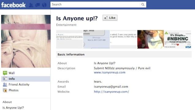 That's the model that's made IsAnyoneUp.com (NSFW) an increasingly popular destination in online porn, with 30 million pageviews a month. The site features nude pictures of young men and women, along with their real names and their Facebook account. Most of the pictures look like they were meant for private sexts with a lover, not the entire internet, and that's because many of them were.