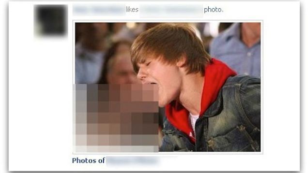 In the meantime, penises, boobs and gore continue to infest Facebook. A new spam image is terrorizing poor moms who just want to tend to their Farmville farm: Justin Bieber photoshopped to look like he's, uh, serenading a giant cock. If you see your coworker flushing their eyes with lemon juice in the bathroom, this could be why!