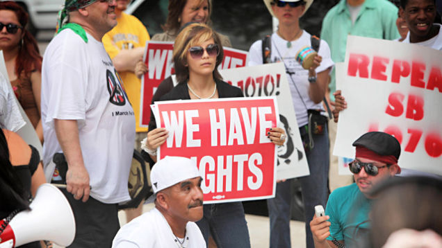 That scheme appears to be heading down the road to failure, Campbell said. The architect of 1070, state Sen. Russell Pearce (R-AZ), became the first-ever Arizona legislator to be recalled earlier this month, and now Campbell says there's a moderate and Latino voter base in Arizona that's reemerged after 1070.