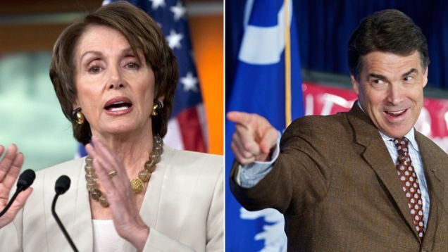 Mostly, though, Perry wants to portray himself as the direct enemy of Nancy Pelosi in order to score cheap political points. But here's Pelosi's response to the challenge this morning: