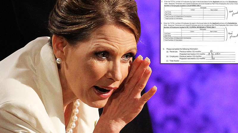 The application, for instance, specifically asks the campaign how many full-time, part-time, and volunteer staffers or independent contractors it has in Florida, California, Michigan, Texas, and Washington, D.C. In each instance, Watkins wrote simply, "None planned." It might make strategic sense for Bachmann to skip the Michigan and Texas primaries, in which natives Mitt Romney and Rick Perry, respectively, will be heavily favored. And California's primary is scheduled so late in the season that the contest will likely be decided before it happens.