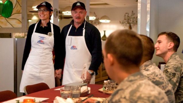 - Congresswoman Gabrielle Giffords put on the best Thanksgiving show of all the politicos we surveyed, handing out turkey meals to soldiers and retirees stationed at an Arizona Air Force base despite having to cope with the injuries she suffered when she was shot in January. Her astronaut husband joined her.