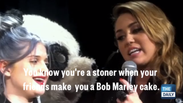 [T]he former "Hannah Montana" star cracks, "You know you're a stoner when friends make you a Bob Marley cake—you know you smoke way too much f***in' weed."