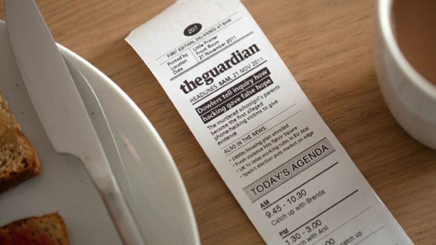 This looks like a joke, but apparently it's real? London design shop BERG has unveiled its Little Printer, which can print, every morning, a 10-inch receipt strip of capsule news, puzzles and social network summary. Because the newspaper was not yet a sufficiently debased medium.