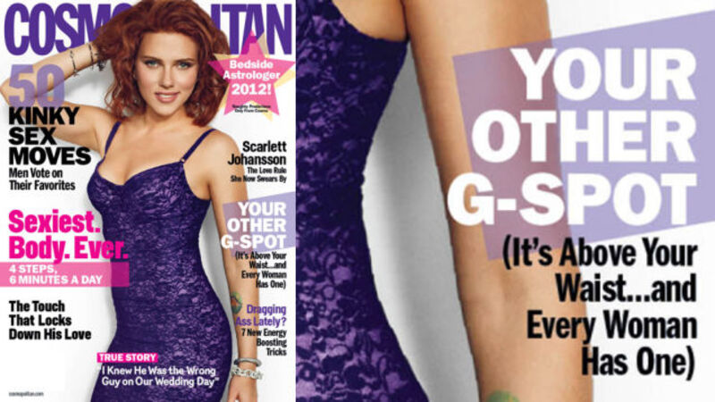 No longer content to obsess about the genital structures between your legs, Cosmopolitan magazine has now uncovered an "above-the-waist G-spot" in females, an "eye erection" capacity in males, and a secret penis in the tip of a man's nose. Is this a fetish or something? An evolution of acrotomophilia, perhaps?