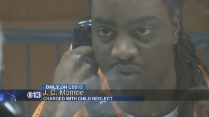 The child's father, J.C. Monroe, disputed the account in a jailhouse interview with CBS13 and vehemently denied that anyone had been "hotboxing" inside the vehicle.