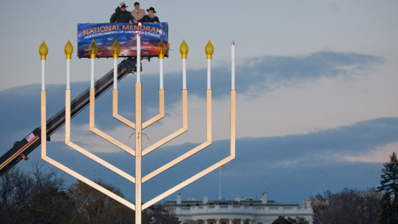 Happy Hanukkah, to one and all! Sorry — I mean happy holidays. Actually, no I don't. I mean Happy Hanukkah! Let your Heeb flag fly! Gorge on gelt! Lose it on latkes! Spin a dreidel once, watch it fall over, get bored, and go open a present! Hanukkah comes but once a year, and lasts a fleeting eight nights, so best to enjoy it while it's here. The annual lighting of the National Menorah took place on the White House Ellipse on Tuesday evening, with first-night torchbearing duties bestowed upon none other than Director of the United States Office of Management and Budget, Jacob J. Lew. Way to count those pennies for America, Jacob Jew! I mean Lew! I mean — wait, that came out totally wrong. Wow, would you look at that gigantic menorah! That's one big menorah. Don't think I've ever seen one that big. Yup. Real big ceremonial candelabra they're oilin' up over there. Real big. [Washington Post, Photo via AP]