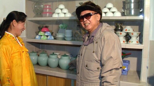 At Mt. Paektu, under which Kim Jong-il's wacky origin myth says he was born in a log cabin, words of Kim Jong-il's that have been carved into stone glowed brightly. (yes, Kim Jong-il had his own writings carved into the side of a mountain. Take that, George Washington.)