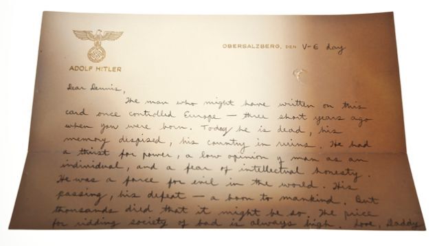 On the day Germany surrendered in 1945, legendary CIA chief Richard Helms—then an officer serving overseas in the OSS—somehow laid hands on some of Adolf Hitler's personal stationery. So naturally he jotted a note to his toddler back in the states about the nature of evil.