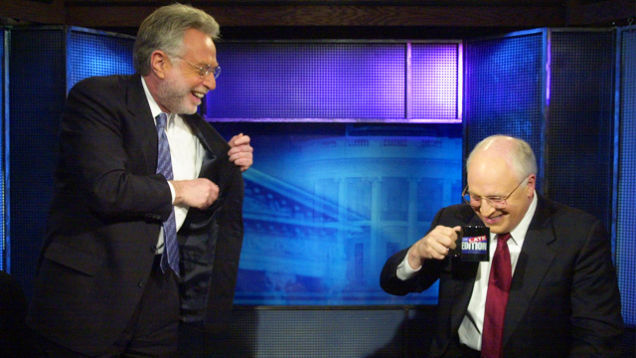 [via Salon; Image of Wolf Blitzer sharing a "light moment" with Vice President Dick Cheney in 2002 via AP]
