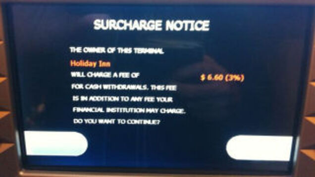 That's just one ATM in a Holiday Inn in Orlando, but there's no law that prevents ATMs from rendering their absurd rents as percentages rather than as flat fees. So your clever strategy of dulling the blow of fees by taking out a lot of money at once? Useless. And, of course, strip clubs are leading the way: