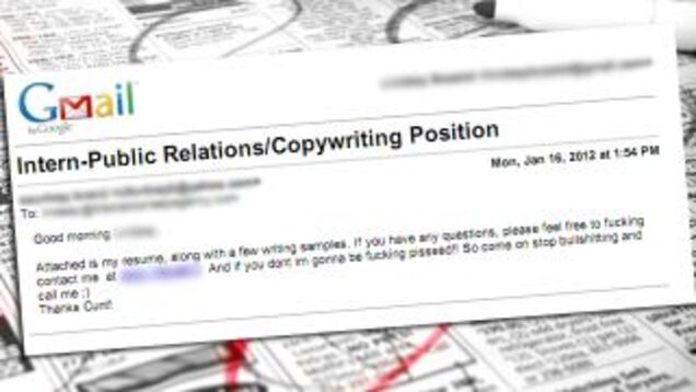 It's hard out there for job-seekers, we know. How can you stand out in a crowd? How do you impress an employer? What's the best way to communicate your skills and your passions? Here's our advice: don't write a cover letter that ends with the words "thanks cunt!"