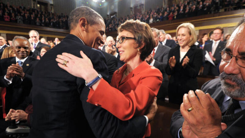 [Image of Obama with retiring Rep. Gabrille Giffords via AP]