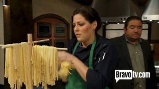 As for what's in store on tonight's episode, here are two things worth noting from what I spotted in the previews: First, they'll be dividing up the chefs into groups of two for both the quickfire and elimination contests, because apparently the producers of this show just can't seem to stop creating team challenges this season. It's like an addiction! Second, the guest judge will be Iron Chef star and garbage disposal pitchwoman Cat Cora who, as far as I know, does not own an apple bong and is highly unlikely to get the judging panel stoned like Charlize apparently did last week. So this means that there's a good chance the judges will actually start hating some of the food again. We can only hope!