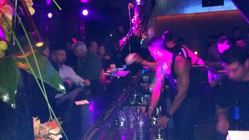 Yes, I weaseled my way into the "friends and family" preview of the space last night, anxious to check it out. As far as large nightclubs, it's quite lovely. Upon entering the club, patrons can either go right, towards a large sunken dance floor surround by (I was told by the lighting designer) about $100K worth of lights (which are controlled by a $50K lighting board). There's a good sized stage on the floor for performances which is backed by a giant LED screen that was playing some sort of fire graphic all night long, like it was the all-seeing eye of Mordor. Though the crowd wasn't full and it was early in the evening, I didn't see one person on the dance floor all night. It was more like a pool party, everyone standing around it and marveling at it, but no one wanting to take a dive. There's two bars on either end of the dance floor, naturally staffed by boys whose muscles were threatening to render their tight XL tank tops asunder.