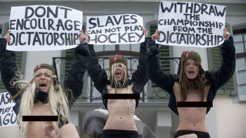 Feast your eyes on these terrifying members of Ukrainian feminist group, FEMEN. They are protesting the 2014 world cup, to be held in Belarus.