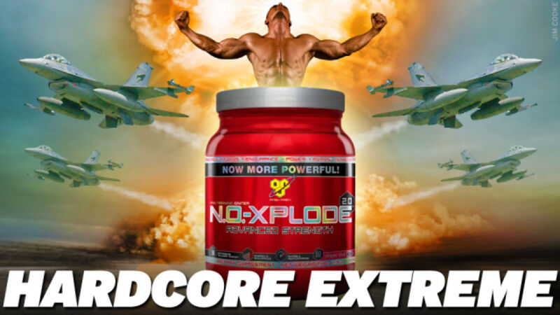 - N.O.-XPLODE: Are you even vaguely interested in the idea of possibly going to the gym one day, a least in an abstract sense? The first thing to do before you find a gym or put on workout clothes or do anything else is to immediately go to Vitamin Shoppe™ and purchase a big old tub of N.O.-XPLODE (FRUIT PUNCH). This is a magical product that will give you enough energy to do any workout on this planet, up to and including SUPER SQUATS™. Tastes like melted lollipops mixed with sand. (The sand is creatine!) None of that dangerous, artificial DMAA crap; N.O.-XPLODE is made with only the most natural Di-Creatine Malic Acid Interfusion, L-Tyrosine-Alpha Ketoglutaric Acid, and Nicotinamide Adenine Dinucleotide. One scoop mixed with a glass of water is plenty to give you all of the ADVANCED STRENGTH™ that you need. Seriously, do not take two scoops. I hereby legally absolve myself of any and all consequences should you take two scoops. Just don't. As VitaminShoppe.com reviewer "pete" says, "this product is unlike anything ive ever f***ing tried b4 its just NUTS any1 who wants to get big and look awesome in the gym all day NEEDs THIS SUPPPLEMENT ASAP f yall who think this isnt effective cuz its frickin INSANE BRO ive been taking this for a month now and ive seen some of my biggest gains over the best 3 years....10 pounds !!!! LEAN MASSS!!!!!!!"