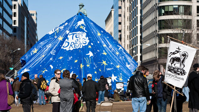Some protestors complied with the National Park Service's deadline, which required them to break camp by noon on Monday. Those that remained set up an enormous blue tarp, the Tent of Dreams, which sounds more like a Cirque du Soleil knockoff than anything I've ever heard in my entire life. Protestors have now removed the tent. (It is, as yet, unknown whether they had the chance to perform any fanciful circus acrobatics inside before doing so.)