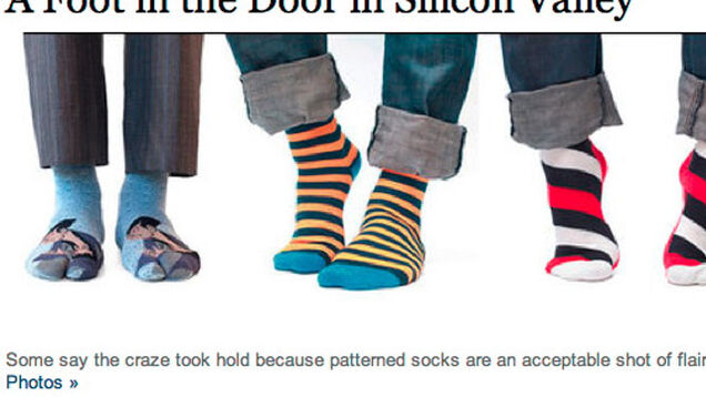 Silicon Valley geeks are wearing garish fun socks under their very blah super-casual uniforms, according to the always unreliable New York Times Style section. It's "almost like a gang sign," says one Googler. OH REALLY? TELL US MORE.