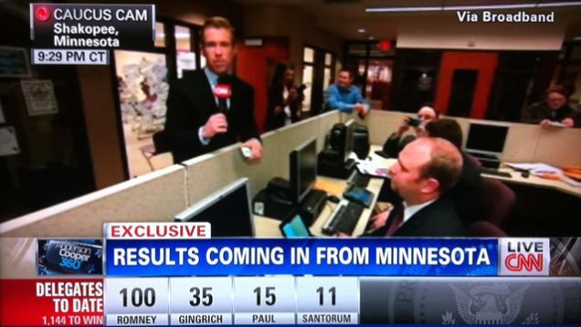 This election season, they have a new gimmick, and it is the least impressive one they've come up with yet. It's the Caucus Cam. They used it at least twice before in their coverage of Iowa and Nevada's caucuses and have brought it back for tonight's elections in Minnesota and Colorado.