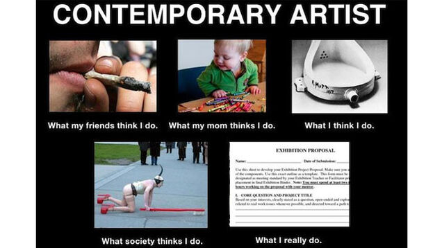 According to Know Your Meme, the "What People Think I Do" meme was created by the artist Garnet Hertz on February 9th. His image above was the satanic seed pod from which this scourge spread. About three days later it was the only thing on Facebook, and every possible career/category of human/hobby had been covered. (Sorry, but "society" has no opinion about web developers and kennel workers.) Just goes to show humanity's inner drive to share with the world that, Yes, I have a job and it's even more boring than you could imagine. It's enough to make you miss "Shit ___ Says."