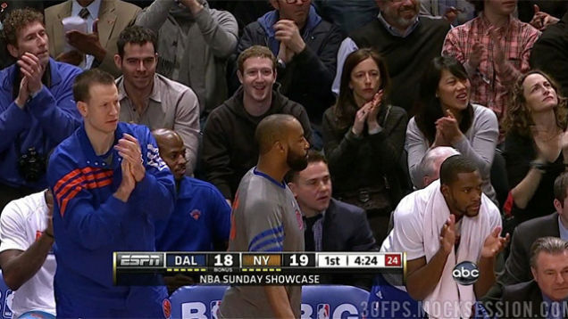 Hey sports fans, look at Mr. Cool Sports Fan up there in the stands. Zuckerberg, with girlfriend Priscilla Chan, will find a way to make another billion dollars stealing fellow Harvard alumnus Jeremy Lin's unselfish style of offense.